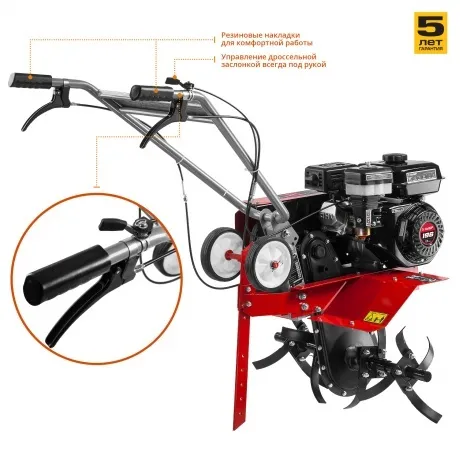 Культиватор Зубр МКТ-170 станет надежным помощником для рыхления почвы на приусадебных участках. Двигатель мощностью 4800 Вт отличается высокой производительностью и надежностью. Воздушный фильтр предотвращает перегрев двигателя и продлевает срок его службы. В конструкции агрегата применяются самозатачивающиеся фрезы из конструкционной стали с шириной обработки 550 мм и глубиной обработки 330 мм. Для удобства эксплуатации культиватор Зубр МКТ-170 оснащен регулируемой по высоте рукояткой со складной конструкцией и транспортировочными колесами. Ременное сцепление гарантирует ровное перемещение без рывков. Металлический щиток защищает пользователя от попадания почвы и других предметов.