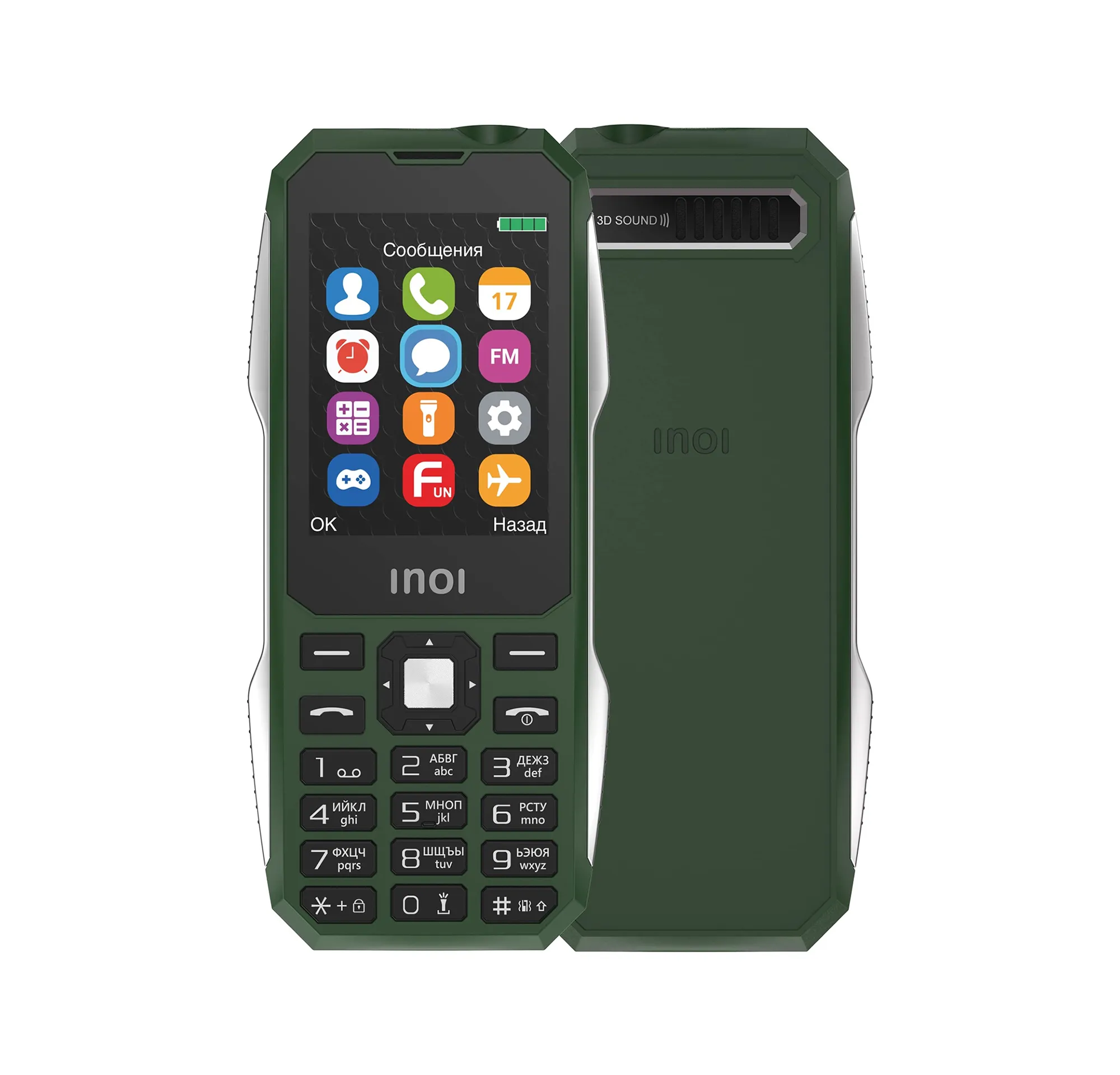 INOI 244Z с ударопрочным корпусом, усиленный металлическими боковыми вставками, прослужит долгое время без поломок и повреждений. INOI 244Z не имеет расширенных мультимедийных возможностей и отвечает требованиям телефонов, разрешенных в армии РФ 2019 года согласно 76-ФЗ: отсутствие диктофона, дополнительного флеш-накопителя, Bluetooth, фотокамеры, доступа в Интернет и MMS.