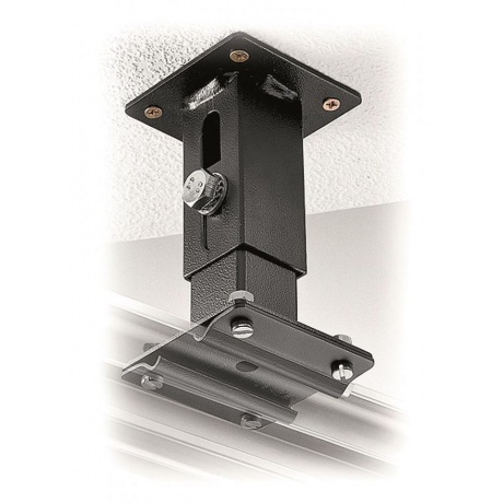 Регулируется по длине от 10 до 15,5 см. Используя зажимной винт, вы сможете получить все промежуточные размеры. Имеется страховочный замок: если зажимной винт ослабнет, держатель заблокируется в положении максимального удлинения. Используется для компенсации разницы высот потолка от 5,5 см и более, в комбинации с другими кронштейнами. Так же используется для получения промежуточных размеров в сочетании с телескопическими кронштейнами для потолка.