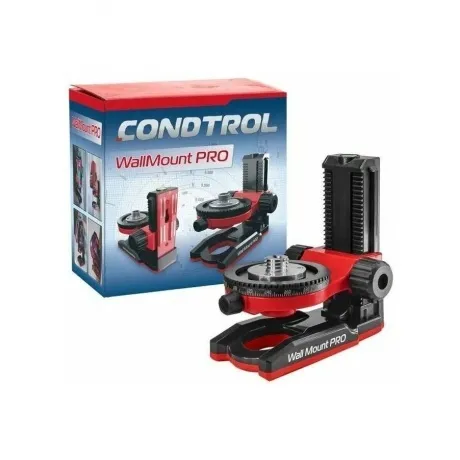 CONDTROL Wall Mount Pro – универсальное крепление для лазерных нивелиров CONDTROL, предназначенное для монтажа нивелиров на стене или строительном профиле. Фирменный аксессуар CONDTROL Wall Mount Prо расширяет возможности пользования нивелиром и создает комфортные условия для выполнения разметки. CONDTROL Wall Mount Pro оснащён мощными магнитами для крепления на металлические поверхности, которые надежно удерживают аксессуар с установленным на нём лазерным нивелиром. Крепление для нивелиров CONDTROL Wall Mount Pro имеет горизонтальный лимб с микрометрическим винтом для плавного и точного наведения вертикального луча (подстройка под угол). Также с его помощью можно быстро построить параллельные вертикальные линии. Благодаря отверстию под саморез, CONDTROL Wall Mount Pro можно закрепить на деревянных или гипсокартонных поверхностях на нужной высоте. Конструкция CONDTROL Wall Mount Pro не создает препятствия для проекции лазерного отвеса. Крепление CONDTROL Wall Mount Pro имеет пузырьковый уровень, позволяющий контролировать положение нивелира относительно вертикальной плоскости. Наличие микролифта обеспечивает плавную подстройку высоты опорной оси нивелира. CONDTROL Wall Mount Pro можно использовать как переходник. Для этого аксессуар оснащен двумя видами резьбы ? и ? дюйма. Комплектация: аксессуар, коробка.