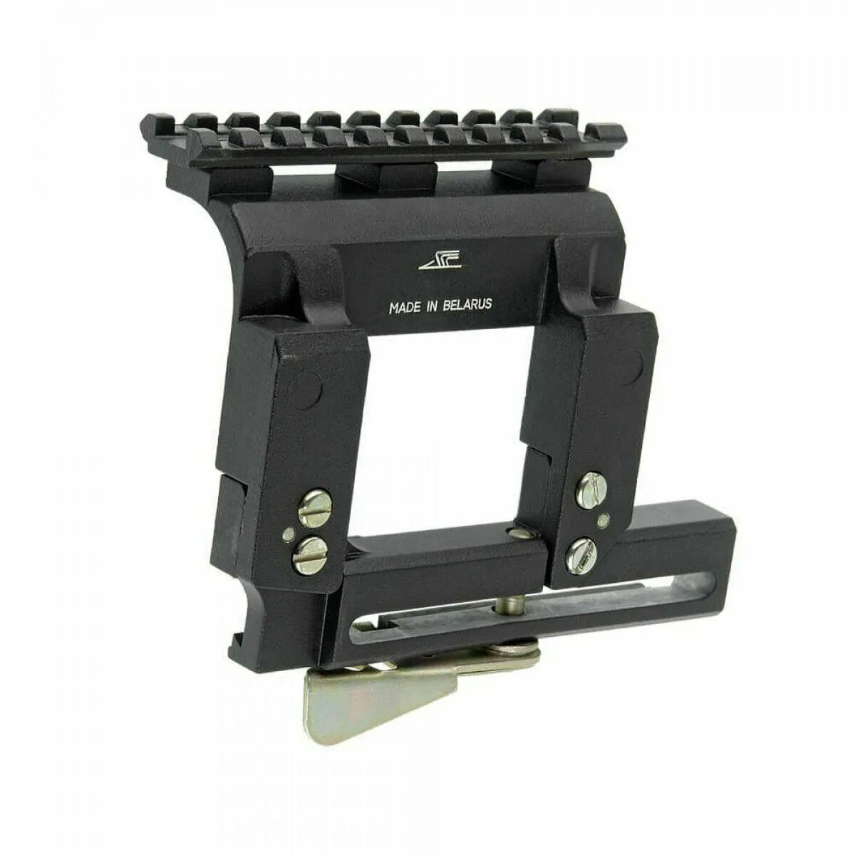 Быстросъемный кронштейн с планкой Weaver. Устанавливается на боковую планку«ласточкин хвост» 14 мм карабина «Вепрь». Закрепляется с помощью стального фиксатора. Кронштейн выполнен из aлюминиeвoгo cплaвa, не подвержен коррозии, черное мaтoвoe пo?pытиe исключает блики. Планка Weaver длиной 108 мм может использоваться для установки оптического прицела.