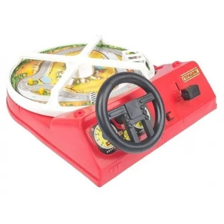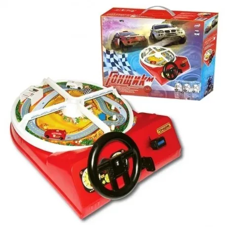 Игрушка занимательна для детей и подростков любого возраста, способствует приобретению элементарных навыков управления автомобилем, развивает реакцию и наблюдательность, необходимые для вождения автомобиля. При игре присутствуют два автомобиля, бокс в котором стоит один автомобиль и при движении можно производить замену автомобиля оставляя второй в боксе. Игра заводится с кнопки пуск, с механическим переключением скоростей (3 скорости). Открытый диск с полем, препятствия в игре выставляются самостоятельно с помощью кронштейнов.