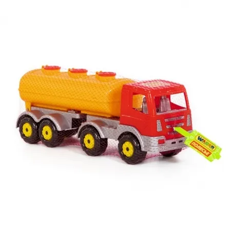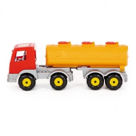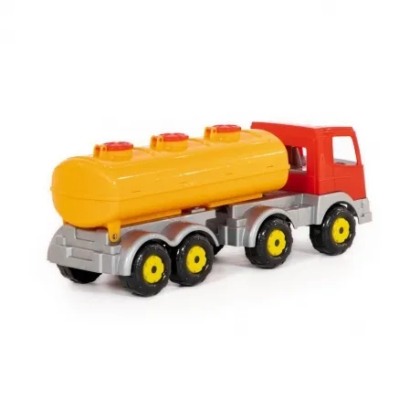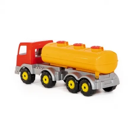 Яркий автомобиль 44235 с полуприцепом-цистерной серии Престиж от производителя игрушек Полесье предназначен для различных сюжетно-ролевых игр дома и на детской площадке мальчикам от 3 лет. Игрушечная грузовая машина оснащена крупными колёсами, просторной кабиной водителя и прицепом-цистерной с открывающимися люками, благодаря чему автомобиль можно использовать по прямому назначению - перевозить воду или любые другие жидкости. Игры с водой способствуют физическому и психическому развитию ребенка, развитию мелкой моторики, концентрации внимания, логики. Игрушка выполнены из высококачественного сертифицированного прочного пластика, моется под водой, гладкие детали машинки приятны на ощупь. Габариты спецтранспорта 48х16х21 см. Внимание! Товар представлен в нескольких видах без возможности выбора. Цена указана за 1 шт.