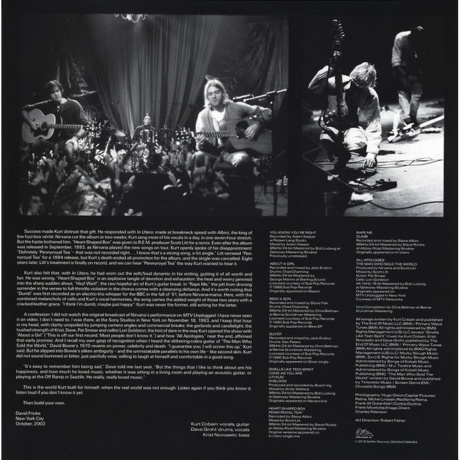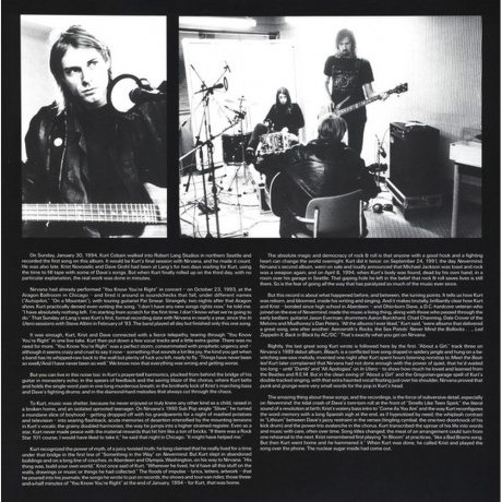 14 классических песен группы Nirvana, в том числе и трек "You Know You're Right", который впервые вышел только на этом сборнике в 2002 году, на двух 180-граммовых пластинках скоростью 45 оборотов. Nirvana — американская рок-группа, созданная в 1987 году гитаристом и вокалистом Куртом Кобейном и басистом Кристом Новоселичем. Успех пришёл в 1991 году с выпуском песни «Smells Like Teen Spirit», после этого группа приобрела культовый статус. За недолгое время существования (коллектив распался в 1994 году после смерти Курта Кобейна) команда выпустила 3 студийных и 3 концертных альбома, а также несколько сборников. Общий тираж пластинок перевалил за 50 миллионов копий.