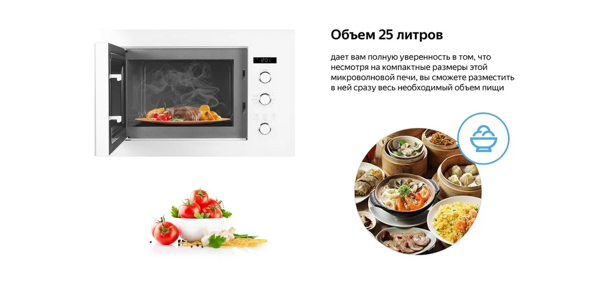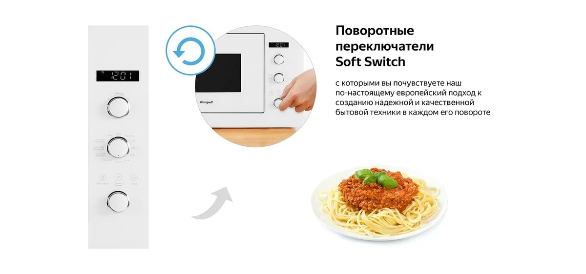 Технология SPIEGEL распределяет энергию в камере более равномерно, позволяя эффективно разогревать еду без использования поворотного стола. Биокерамическое покрытие позволяет реализовать настоящий 3D-нагрев, сохраняя при этом в продуктах витамины, минералы и другие полезные вещества и расходуя при этом гораздо меньше энергии! Объем 25 литров дает вам полную уверенность в том, что несмотря на компактные размеры этой микроволновой печи, вы сможете разместить в ней сразу весь необходимый объем пищи. Селектор на 12 функций и автоменю на 11 программ открывает по-настоящему богатые возможности по настройке вашей микроволновой печи под требуемые особенности продуктов. Кварцевый гриль — позволит готовить вам аппетитное мясо, рыбу или овощи, поджаренные до хрустящей корочки! Режим Разморозка — позволит подготовить замороженные продукты к дальнейшему приготовлению, обеспечивая равномерный результат без перегретых краев или непроработанных участков внутри. Режим Стерилизация — дает вашей СВЧ возможность уничтожать вредные микроорганизмы, стерилизовать камеру и посуду в ней. Режим Подогрев — позволяет поддерживать заданную температуру еды в течение выбранного времени.