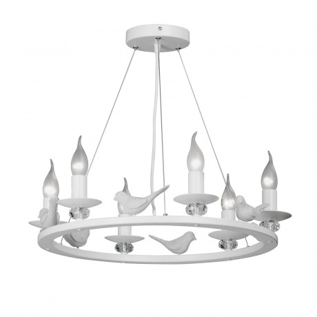 Подвесная люстра со свечами и птичками будет отлично смотреться в гостиной, спальне в стиле модерн. Люстра оснащен цоколем 6xE14. Питание от сети 220V, общая максимальная мощность 240W позволяет осветить площадь до 12 кв. м.