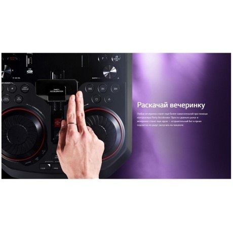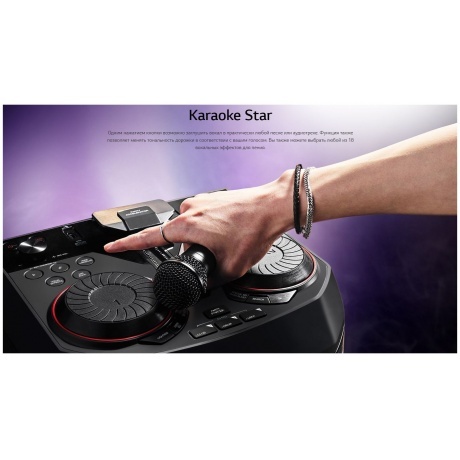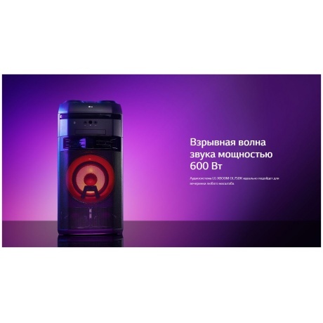 Домашняя аудиосистема LG XBOOM OL75DK формата 2.1 обладает мощностью 600 Вт, что позволяет устраивать веселые вечеринки с громкой музыкой. Модель идет в комплекте с FM-антенной, кабелем питания, микрофоном с батарейками и караоке-диском DVD. Вы можете управлять настройками аудиосистемы с помощью пульта от ТВ или смартфона. Режим TWS позволяет разным Bluetooth-устройствам работать в режиме единой стереосистемы. LG XBOOM OL75DK оснащена FM-тюнером с памятью на 50 станций, проигрывателем дисков CD/DVD, USB-портом для прослушивания и записи музыки на внешние накопители. Вы можете использовать 19 предустановок эквалайзера, настраивать громкость вокала и микрофона, тональность голоса. Есть интересные функции подсветки, караоке, усиления низких частот (Bass Boost), DJ Pro, конструктора сэмплов и включения аудиоэффектов.