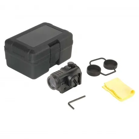 прицел коллиматорный Veber Wolf Reflex 122 RG, ключ шестигранный, материал для чистки линз, батарея питания CR1620, руководство по эксплуатации и гарантийный талон, упаковка