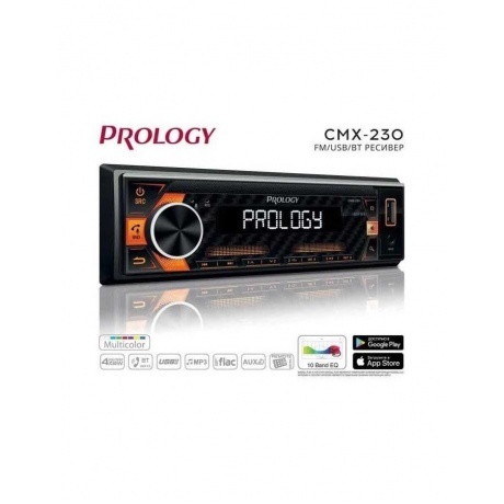 Автопроигрыватель Prology CMX-230 со стандартным типоразмером 1 DIN обладает четырьмя каналами звука, благодаря чему действует с мощностью 55 Вт. Передняя панель оснащена небольшим LCD-дисплеем и кнопками управления с многоцветной подсветкой, а также разъемами для быстрого доступа к USB и AUX. На задней панели имеется набор аналоговых разъемов, включая антенный вход и RCA-выход. Устройство Prology CMX-230 дополнено эквалайзером и FM-тюнером. Также имеется модуль Bluetooth для прослушивания музыки с плеера смартфона и безопасных звонков за рулем. Прибор поставляется с пультом для удобного управления функционалом.