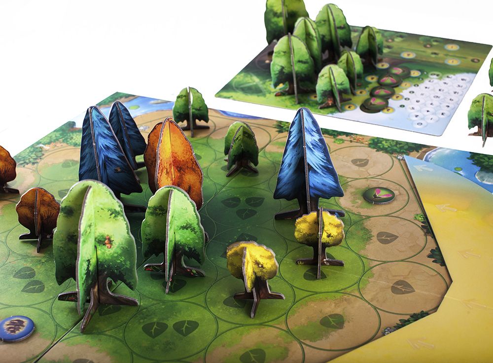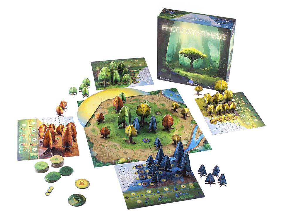 Фотосинтез (Photosynthesis) - это очень красивая стратегическая игра, которая с первого взгляда очаровывает не только качеством компонентов, но и размеренным игровым процессом. Деревья борются за каждый луч солнечного света ради роста и расширения своей популяции в этом маленьком, но плодородном лесу. Каждое дерево растёт, получая очки солнечного света, и отбрасывает тень на соседние деревья поменьше. Когда дерево проходит весь жизненный цикл, игрок получает за него победные очки пропорционально плодородности почвы, на которой он вырастил своё дерево.