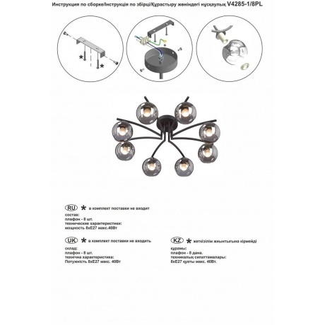 Описание товара Люстра Vitaluce V4285-1/8PL, 8xE27 макс. 40Вт
