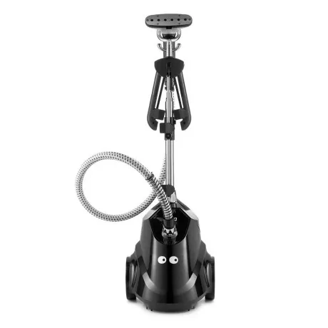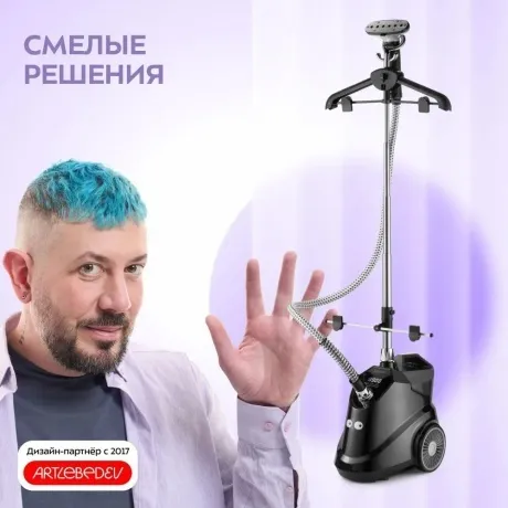 Вертикальный отпариватель Kitfort КТ-9115 позволяет прогладить любые вещи и изделия из текстиля даже со сложной текстурой, которые обычно не гладят. Кроме глажки и отпаривания он обрабатывает вещи мощной струёй горячего пара, проводя чистку и дезинфекцию. Во время отпаривания одежда может висеть на вешалке отпаривателя, установленной на телескопической стойке, на обычной вешалке, подвешенной к отпаривателю, просто на вешалке, на сушилке для белья. Шторы, например, можно гладить, не снимая их. Кнопки «Меньше» и «Больше» позволяют выбрать один из 12 уровней мощности, где мощность 500 Вт – минимальная подача пара, 2200 Вт – максимальная подача пара. Чем плотнее ткань, тем больше мощность потребуется. На дисплее отображается выбранный режим. Во время работы вода из резервуара под действием силы тяжести поступает в бойлер, где нагревается и испаряется. Пар проходит по паровому шлангу и выходит из паровых сопел на рабочей поверхности парового утюжка. Он не тяжёлый и удобно ложится в руку. Данная насадка предназначена для счищения шерсти с отпариваемых вещей. С помощью зажима вы можете прогладить стрелки на брюках. Ёмкость съёмного резервуара составляет 3,8 л. Такого объёма хватит минимум на 84 минуты беспрерывного отпаривания. Вешалка и телескопическая стойка складные, а корпус отпаривателя компактный. Такая конструкция позволяет удобно хранить его в комнате или в шкафу. Корпус прибора оснащён колесиками для удобного перемещения по квартире. С нашей техникой очень легко подружиться, потому что она не только лёгкая и функциональная, но и будто живая с весёлыми глазами. Никого не оставит равнодушным! В любой момент вы можете отклеить этот стикер без вреда для поверхности.