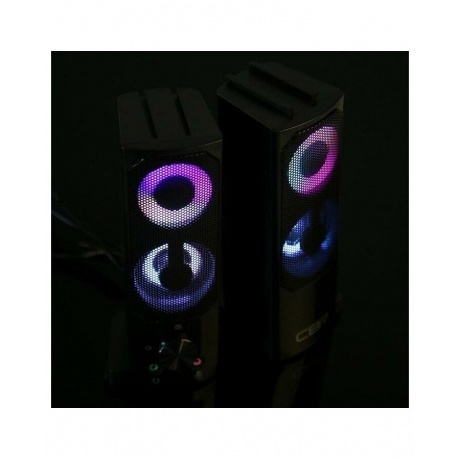 Акустическая система 2.0 CMS 514L Black отлично подходят как для прослушивания музыки, так и для просмотра фильмов. Сборная конструкция позволяет трансформировать колонки в саундбар с вертикальным расположением. RGB-подсветка для придания особой атмосферы. Устройство особенно пригодится владельцам ноутбуков, которые недовольны звучанием или мощностью встроенного динамика. Колонки питаются от USB разъема. Компактные габариты позволяют эффективно использовать рабочее пространство. На передней панели основной колонки находится колесико, при помощи которого Вы сможете регулировать громкость не прибегая к перемещению ползунков в операционной системе. К источнику звука колонки подключаются посредством кабеля на конце с разъемом 3.5 мм Jack. Длины кабеля (1.2 метров) вполне достаточно для удобного подключения к разъемам на задней панели персонального компьютера.