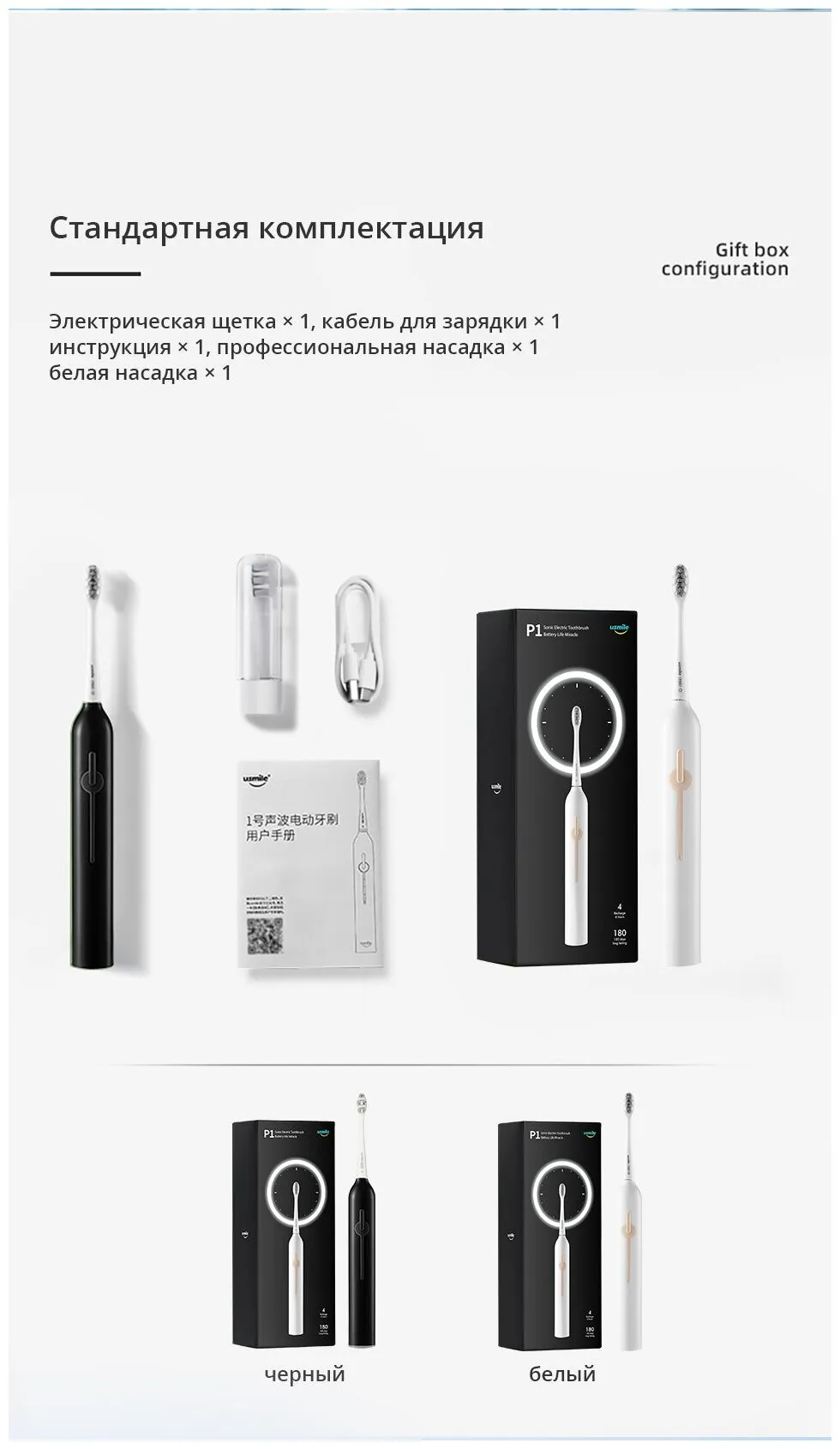 Описание товара Электрическая зубная щетка Usmile P1 (белая)