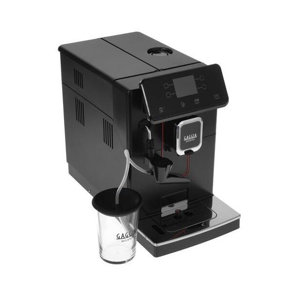 Кофемашина GAGGIA MAGENTA MILK BK 8701/01 умеет готовить 9 напитков, в том числе с добавлением молока. Встроенная кофемолка с керамическими жерновами быстро измельчает кофейные зерна без искажения вкусовых свойств и естественного аромата. Особая система приготовления молочной пенки с прозрачной емкостью 500 мл обеспечивает исключительное качество напитка и отсутствие брызг. Для управления доступными параметрами установлена панель с дисплеем и сенсорными кнопками. Из особенностей модели GAGGIA MAGENTA MILK BK 8701/01 отмечаются автоматическая декальцинация, противокапельная система, контроль крепости кофе и порции воды.