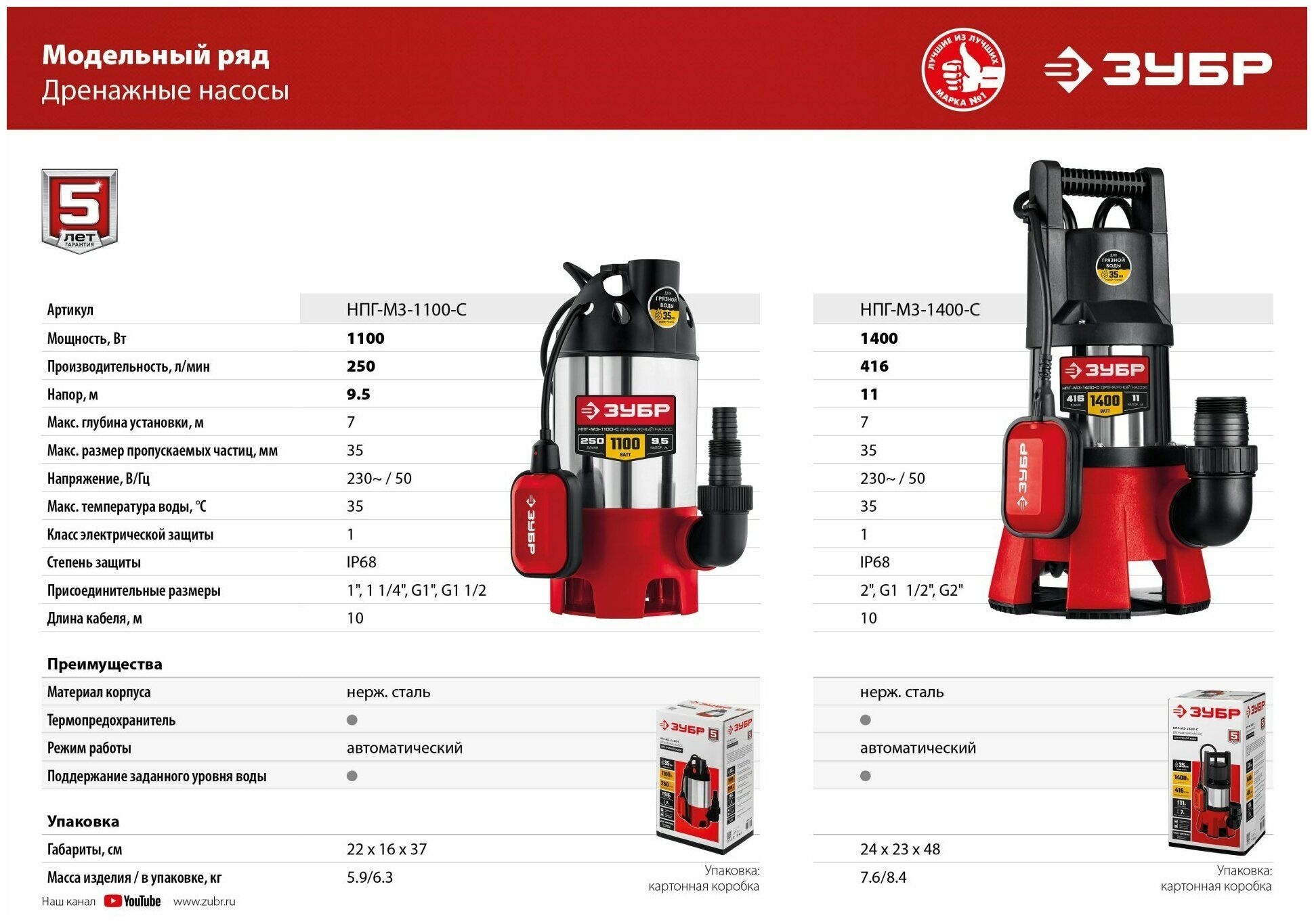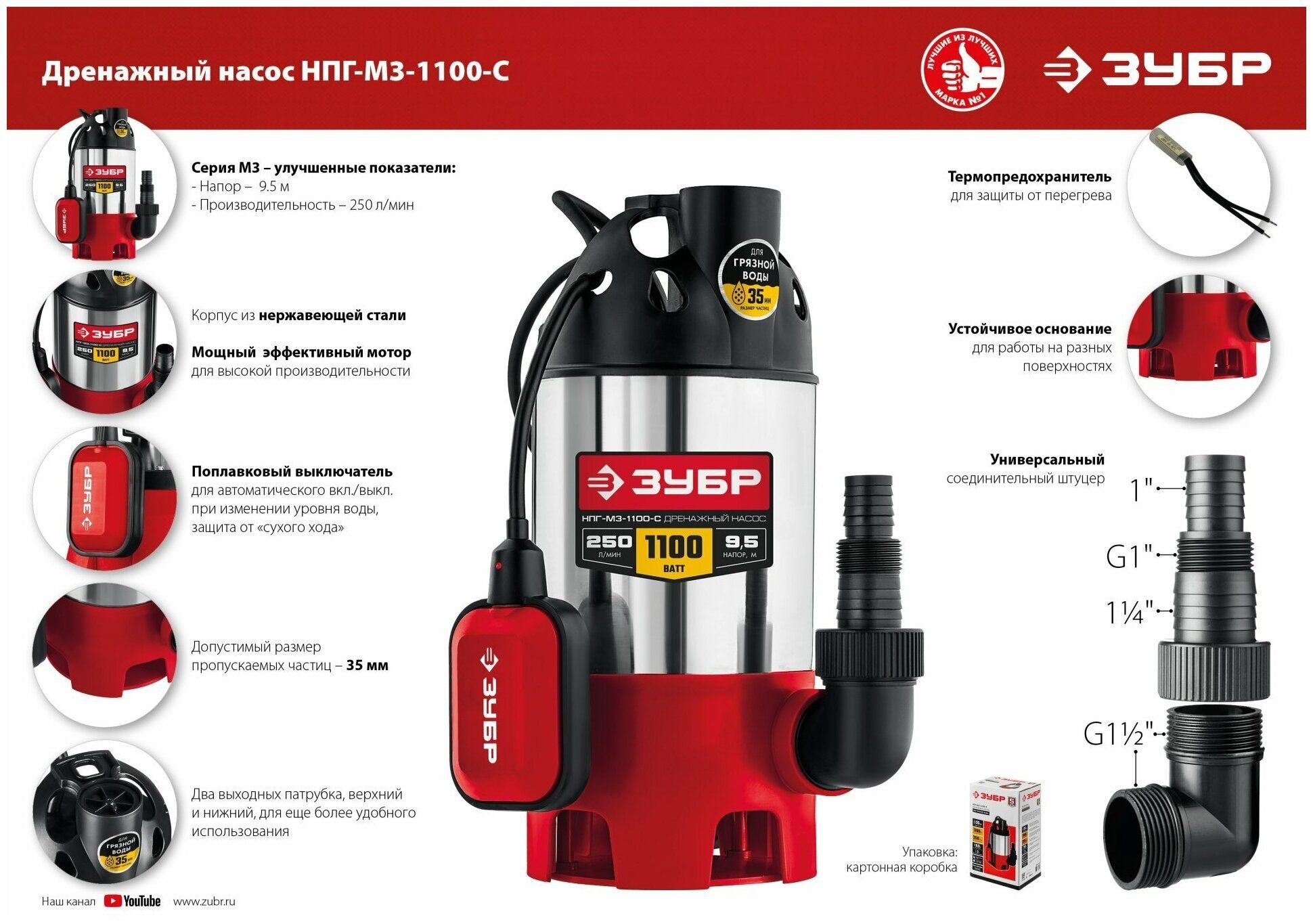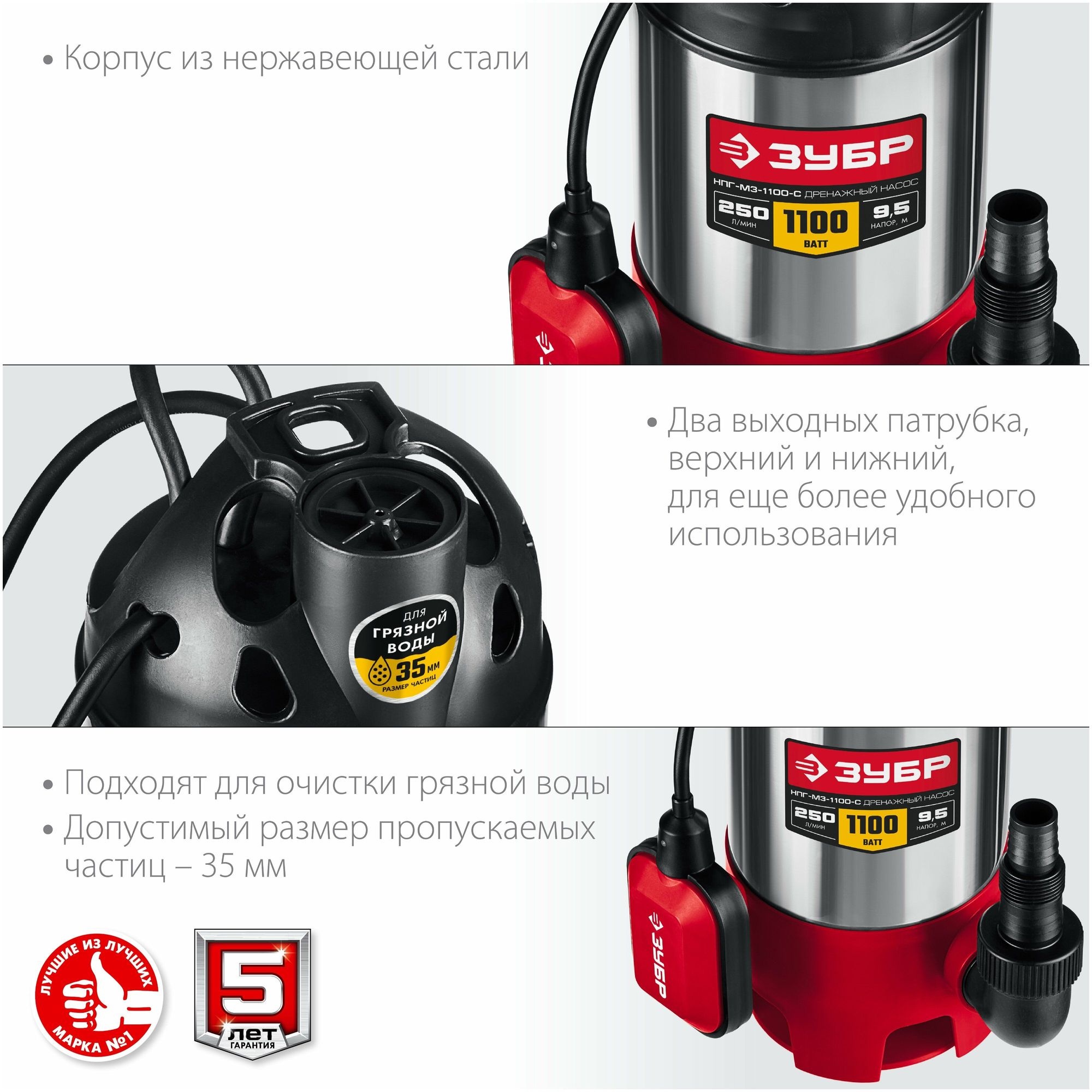 Отзывы о товаре Насос погружной дренажный ЗУБР НПГ-М3-1100-С