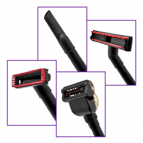 пылесос, держатель насадок, мини-турбощетка, насадка 2 в 1, насадка для ламината/паркета, насадка для пола и ковров, щелевая насадка, документация, упаковка