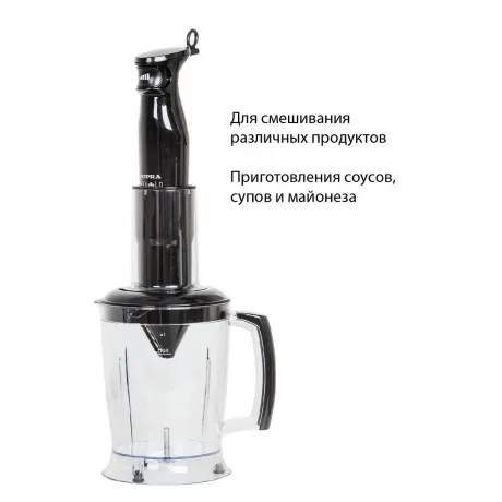Многофункциональный блендер SUPRA HBS-800 - идеальный выбор для любой хозяйки! Это великолепный кухонный прибор, который отлично подходит для приготовления разнообразных блюд и напитков. С ним Вы сможете легко и быстро приготовить любимые блюда и наслаждаться их вкусом вместе с близкими и друзьями. КЛЮЧЕВЫЕ ХАРАКТРИСТИКИ: Тип: многофункциональный блендер Максимальная мощность - 1100 Вт ОБЛАСТИ ПРИМЕНЕНИЯ: Замес теста Взбивание яиц, сливок, крема, бисквитов или готовых десертов Смешивание различных продуктов для приготовления соусов, супов, майонеза Приготовление супа-пюре, муссов Измельчение мяса, лука, чеснока, орехов Приготовление картофельного пюре ОСОБЕННОСТИ И ПРЕИМУЩЕСТВА: Стильный дизайн Корпус из нержавеющей стали Погружная часть блендера из нержавеющей стали Эргономичная ручка Плавная регулировка скорости Управление одной кнопкой Ножи из нержавеющей стали Простота использования Легкая очистка Удобство хранения ОСНАЩЕНИЕ: Съемная насадка-блендер из нержавеющей стали Съемная насадка-венчик из нержавеющей стали Венчик для взбивания молочной пенки Измельчитель с конусными насадками 1,25 л Насадка для картофельного пюре Мерный стакан с крышкой 600 мл Блендер погружной SUPRA HBS-800 - это надежное устройство, которое поможет вам с легкостью приготовить любимые блюда. С мощностью 1100 Вт он способен смешивать, взбивать, измельчать любые продукты, обеспечивая идеальные результаты. Управление этим блендером невероятно легкое, благодаря всего одной кнопке. Плавная регулировка скорости позволяет получать идеальную текстуру для любого блюда. Ножи, изготовленные из нержавеющей стали, гарантируют точность и легкость при работе с любыми продуктами. Съемная насадка-блендер и насадка-венчик также выполнены из нержавеющей стали, позволяя их легко чистить и сохранять в чистоте годами. Кроме того, блендер включает венчик для взбивания молочной пенки, а также насадку для картофельного пюре. Вместительный измельчитель объемом 1,25 л с 3 конусными насадками и мерный стакан объемом 600 мл с крышкой позволяют приготовить большие и маленькие порции блюд. Блендер погружной SUPRA HBS-800 - это идеальное решение для тех, кто хочет получить максимальную пользу от своей кухни. Он прост и удобен в использовании, а также обеспечивает многофункциональное использование благодаря насадкам, что делает его незаменимым для приготовления любимых блюд. Закажите его прямо сейчас и переживите ощущение удовольствия от готовки!