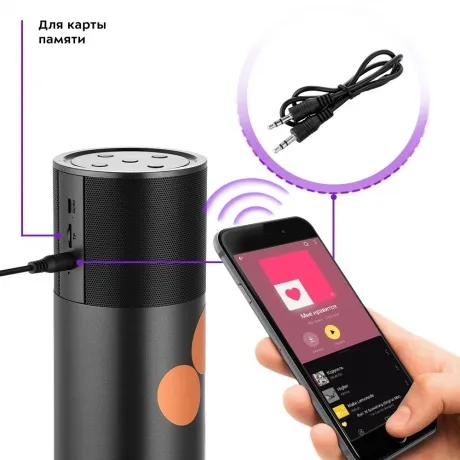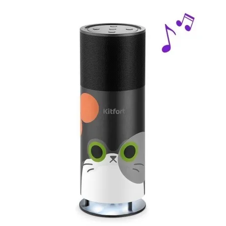 КТ-3366 - это стильная и компактная беспроводная колонка, с помощью которой вы можете слушать любимую музыку, радио и отвечать на звонки через громкую связь. Частотный диапазон колонки составляет 10018000 Гц, что обеспечивает высокое качество звука. Колонка подключается к мобильному устройству через шнур AUX (входит в комплект) или посредством Bluetooth. Есть возможность подключения карты памяти (TF или MicroSD). Либо вы можете слушать любимую радиостанцию в режиме Радио. Встроенный в колонку микрофон позволяет не только воспроизвести звонок на громкую связь, но и ответить на него. Он располагается рядом с разъёмом для подключения шнура AUX. На верхней части колонки расположена панель управления, с помощью которой вы можете переключать песни, режимы воспроизведения (Bluetooth, карта памяти, AUX, радио), регулировать громкость и управлять подсветкой. В нижней части колонки находится приятная неяркая подсветка, которая плавно мигает. Подсветку можно в любой момент отключить. В комплекте с колонкой КТ-3366 идёт набор наклеек для создания образа милого котика. Каждая деталь пронумерована для соблюдения последовательности нанесения. В любой момент их можно отклеить - наклейки не оставляют следов на поверхности. На задней стороне корпуса расположены разъёмы для зарядки (подключения шнура Micro-USB). Для зарядки устройства используйте блок питания с USB-разъёмом и параметрами: 5 В, не менее 0.5 A. Также можно заряжать устройство через компьютер или пауэрбанк. Устройство компактное и лёгкое: его удобно брать с собой. Просто зарядите колонку и возьмите с собой в путешествие, на прогулку или пикник. Если аудио не воспроизводилось в течение 5 мин, для экономии заряда колонка автоматически выключится.