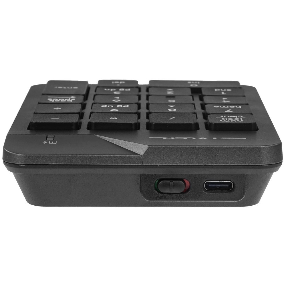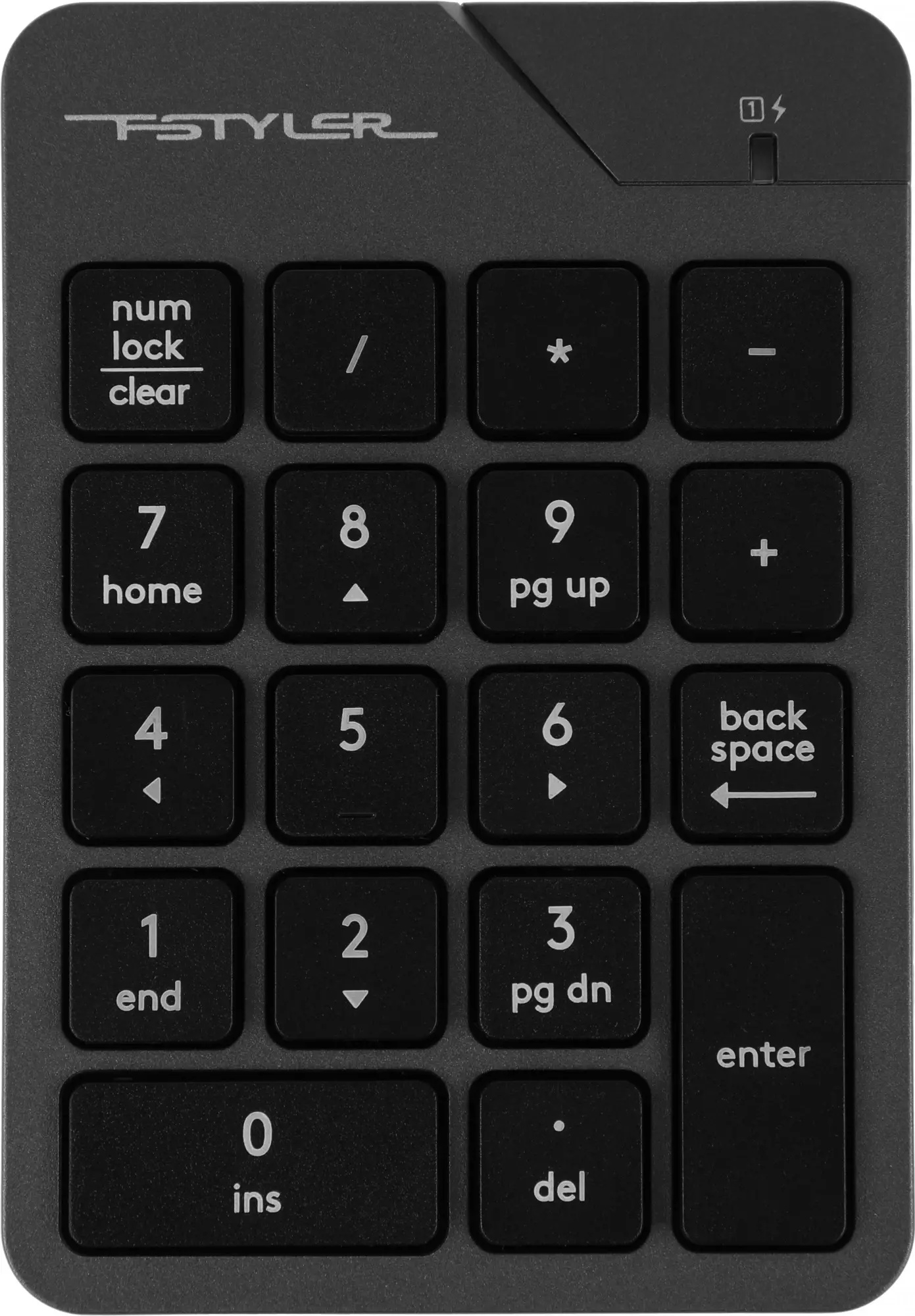 Клавиатура оснащена 18 клавишами, обеспечивающими все основные функции для работы с ПК. Она питается от встроенного аккумулятора, что избавляет от необходимости постоянной замены батареек. В комплект входит оптическая мышь с разрешением сенсора 2000 dpi, также работающая от встроенного аккумулятора, что обеспечивает плавное и точное перемещение курсора.