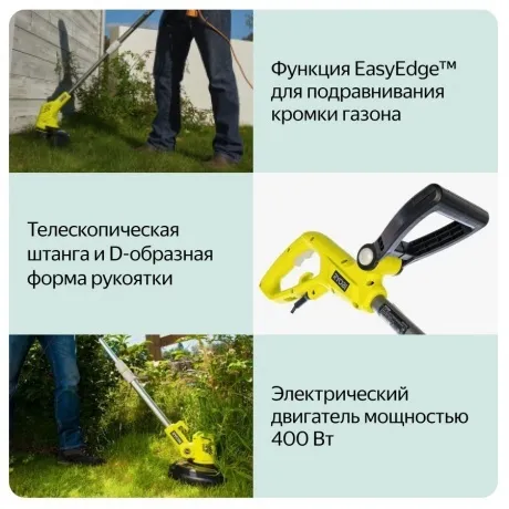 Триммер Ryobi RLT4125 5133002791 отличается простотой эксплуатации, удобной транспортировкой и небольшим весом в 2.5 кг — с ним легко справится и женщина. Триммер используется для скашивания и подравнивания кромок газона. Имеет телескопическую штангу, что дает возможность работать в удобном положении. Малые габариты позволяют без проблем косить в труднодоступных местах. Триммер работает от электричества, поэтому нет зависимости от уровня зарядки АКБ и емкости бака. Это тихий, компактный и простой в эксплуатации, но при этом мощный триммер по доступной цене. Благодаря электромотору инструмент не выделяет выхлопные газы.