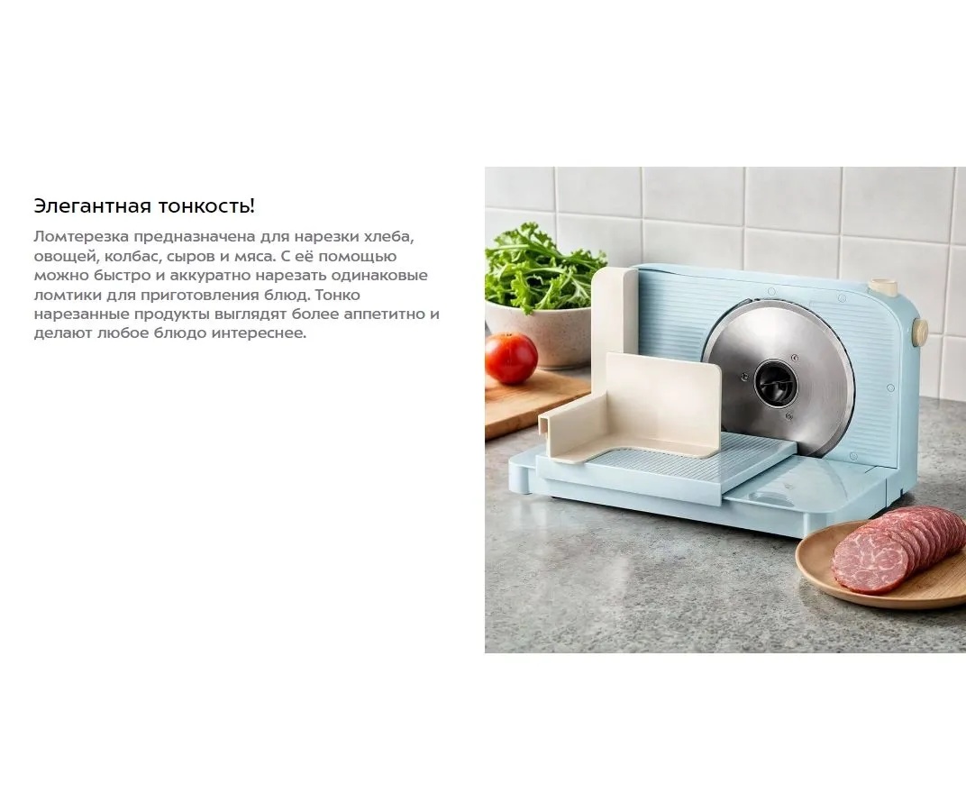 Ломтерезка предназначена для нарезки хлеба, овощей, колбас, сыров и мяса. С её помощью можно быстро и аккуратно нарезать одинаковые ломтики для приготовления блюд. Тонко нарезанные продукты выглядят более аппетитно и делают любое блюдо интереснее.