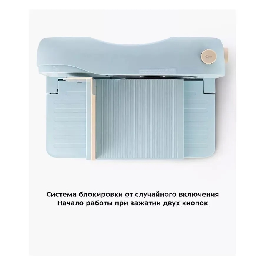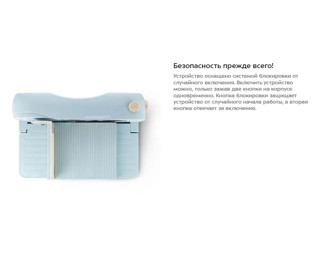 Устройство оснащено системой блокировки от случайного включения. Включить устройство можно, только зажав две кнопки на корпусе одновременно. Кнопка блокировки защищает устройство от случайного начала работы, а вторая кнопка отвечает за включение.