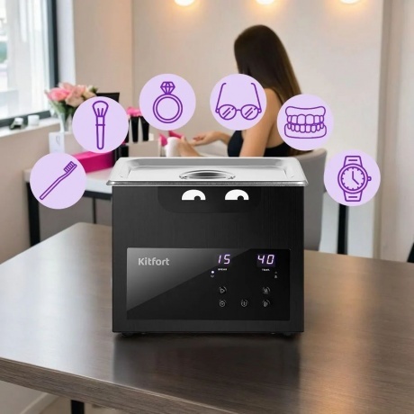 Ультразвуковая мойка КТ-6337 поможет эффективно очистить и продезинфицировать небольшие изделия из металла, пластика и стекла. В такой мойке вы можете очистить очки, ювелирные украшения, кисти, ортодонтические предметы и многое другое.