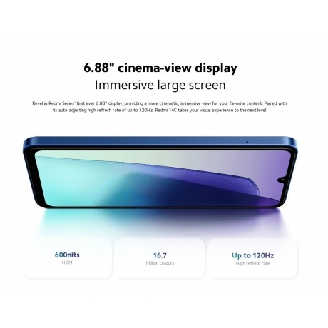 Откройте для себя Xiaomi Redmi 14C — современный смартфон, сочетающий в себе стильный дизайн, мощную производительность и доступную цену. Этот смартфон создан, чтобы удовлетворить потребности активных пользователей, предлагая первоклассные характеристики и передовые технологии. Погружайтесь в мир мультимедиа с ярким и четким 6.88 -дюймовым экраном, который обеспечивает реалистичную передачу цветов и позволяет комфортно просматривать видео, фото и играть в игры. Благодаря мощному восьмиядерному процессору, Xiaomi Redmi 14C справится с любыми задачами, будь то запуск приложений, многозадачность или просмотр потокового видео. Забудьте о лаге и задержках!. Xiaomi Redmi 14C оснащен аккумулятором высокой емкости, обеспечивающим до двух дней активного использования без необходимости подзарядки. Будьте на связи весь день, не беспокоясь о заряде. Запечатлите лучшие моменты с потрясающей детализацией благодаря 50-мегапиксельной основной камере. Функции искусственного интеллекта помогут сделать ваши фотографии еще ярче и выразительнее. Обеспечьте безопасность ваших данных с помощью мгновенной разблокировки смартфона через сканер отпечатков пальцев или функцию распознавания лица. Xiaomi Redmi 14C выделяется утонченным дизайном с градиентной задней панелью, что придает устройству премиальный вид. Он отлично лежит в руке и привлекает внимание. MIUI на базе Android 13. Получите максимум от вашего смартфона с последней версией MIUI на базе Android 13, предоставляющей плавный интерфейс, множество настроек и новые возможности для продуктивности и развлечений. Xiaomi Redmi 14C — это ваш идеальный выбор для повседневного использования, объединяющий в себе все необходимые функции и возможности в одном стильном корпусе!