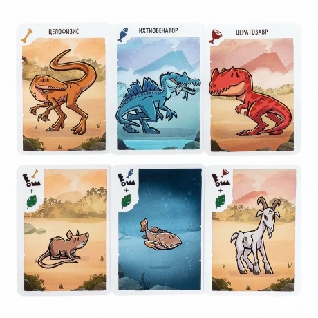 Игра на Вымирание — это быстрая игра с милыми динозаврами на картах, в которой вы будете кормить обитателей своего лагеря, ловить ящеров на живца, уводить их из-под носа соперников и, конечно же, спасать от вымирания.