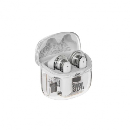 Наушники TWS JBL TUNE FLEX ghost защищены по стандарту IPX4, который уберегает от воздействия прямых брызг. Чувствительность 110 дБ указывает на громкость, которую развивает аксессуар. Конфигурацией предусмотрено 4 цифровых микрофона, которые служат для активации голосовых помощников, подавления шумов, общения. Амбушюры из пластика и силикона плотно прилегают к ушной раковине. Время автономной работы наушников TWS JBL TUNE FLEX ghost от одного заряда достигает 8 ч. Диаметр мембраны излучателей составляет 12 мм, что позволяет модели воспроизводить высокие и средние частоты. Открытое акустическое исполнение гарантирует чистое звучание. Клавиши обеспечивают управление треками и звонками, а также доступ к функционалу.