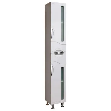 Пенал RUNO Толедо 30 правый 00000001037 изысканный и элегантный дизайн в оформлении ванной комнаты. Шкаф выполнен в белом цвете с оригинальной фрезеровкой и стеклянными вставками на фасадах превосходно украсит любой интерьер ванной комнаты. Изделие имеет две распашные дверцы и два выдвижных ящика на шариковых направляющих, в нижнем и верхнем отделениях по одной встроенной полке. В комплекте идут петли со встроенным доводчиком, 4 ручки, 2 хромированные и 2 пластиковые ножки. Мебель для ванной RUNO красота и практичность в мелочах!