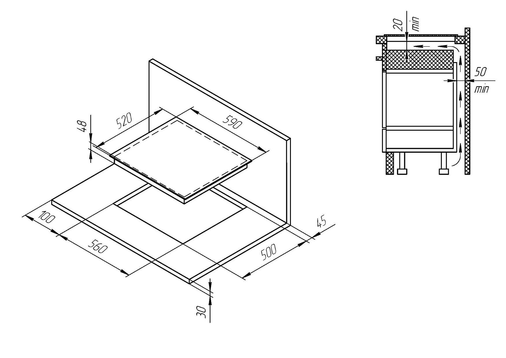 Размер ниши для встраивания