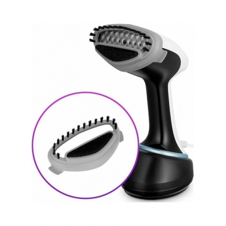 отпариватель, резервуар для воды с заглушкой, ворсовая насадка, мерный стакан, руководство по эксплуатации