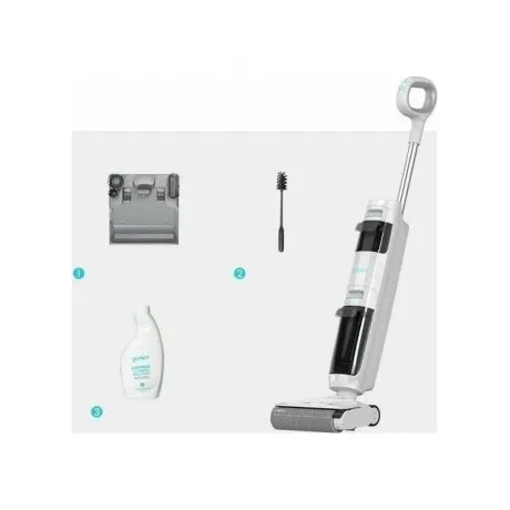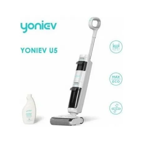 Yoniev пылесос Wet & Dry U5 – беспроводная модель. Она предназначена для единовременного выполнения двух типов уборки — сухой и влажной. Щетка примыкает к стене с одной стороны, позволяя проводить очистку вдоль плинтусов. Устройство удаляет пятна любой стойкости. Щетку можно наклонять на 30°. Это удобно для очищение полов и удаления пыли под мебелью. можно собрать пыль, скопившуюся под мебелью. Благодаря разделению потоков и двум герметичным емкостям для жидкости для влажной уборки используется только чистая вода. Детали устройства можно промывать под водой. Зарядная док-станция Yoniev пылесоса Wet & Dry U5 занимает мало места, поэтому его удобно хранить даже в небольшой квартире. Благодаря опции самоочистки валик просушивается почти полностью. Корпус весит 4.1 кг, поэтому пользоваться пылесосом комфортно. Отслеживать настроенные параметры можно на LED-дисплее.