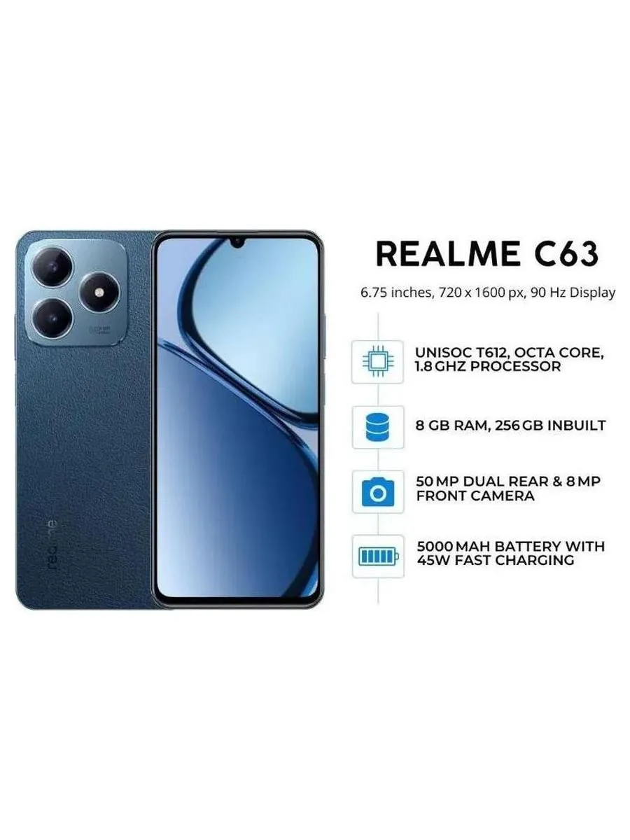 Смартфон Realme C63 6/128Gb Blue - данный товар вы можете купить по цене 8490 руб. в интернет-магазине КотоФото. Характеристики, описание товара, фото и цена представлены на карточке товара. Заказать товар вы можете по телефону 8(800)505-43-75 в Казани.
