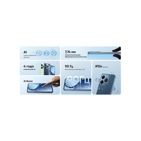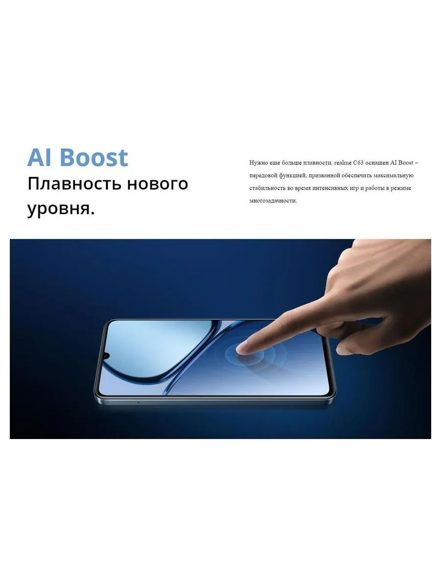 Наслаждайтесь всеми любимыми развлечениями – играми, фильмами, музыкой, с большим запасом энергии в конце дня. Смартфон realme C63 оснащен AI Boost – передовой функцией, призванной обеспечить максимальную стабильность во время интенсивных игр и работы в режиме многозадачности. Иммерсивный опыт потребления контента и защита для глаз. Большой экран и интеллектуальная настройка яркости благодаря двум датчикам освещенности обеспечивают великолепную и четкую картинку. Инновационное бесконтактное управление жестами. Свайпайте видео, соцсети и другой контент одним взмахом руки. Кнопка включения теперь больше, чем кнопка. Помимо сканера отпечатка пальцев, ее можно настроить для запуска любимых настроек и приложений одним касанием, таких, как фонарик, камера или беззвучный режим. Режим Game Mode поддерживает интеллектуальное перераспределение оперативной памяти и динамическую настройку производительности, обеспечивая смартфону мощную игровую производительность. Также можно включать режим «Не беспокоить» для блокировки уведомлений, что позволяет сосредоточиться на игре и погрузиться в нее.