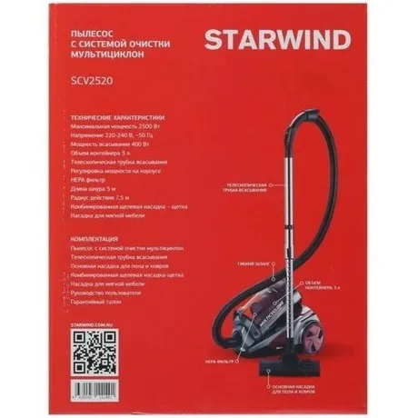 Описание товара Пылесос Starwind SCV2520 2500Вт красный/серый