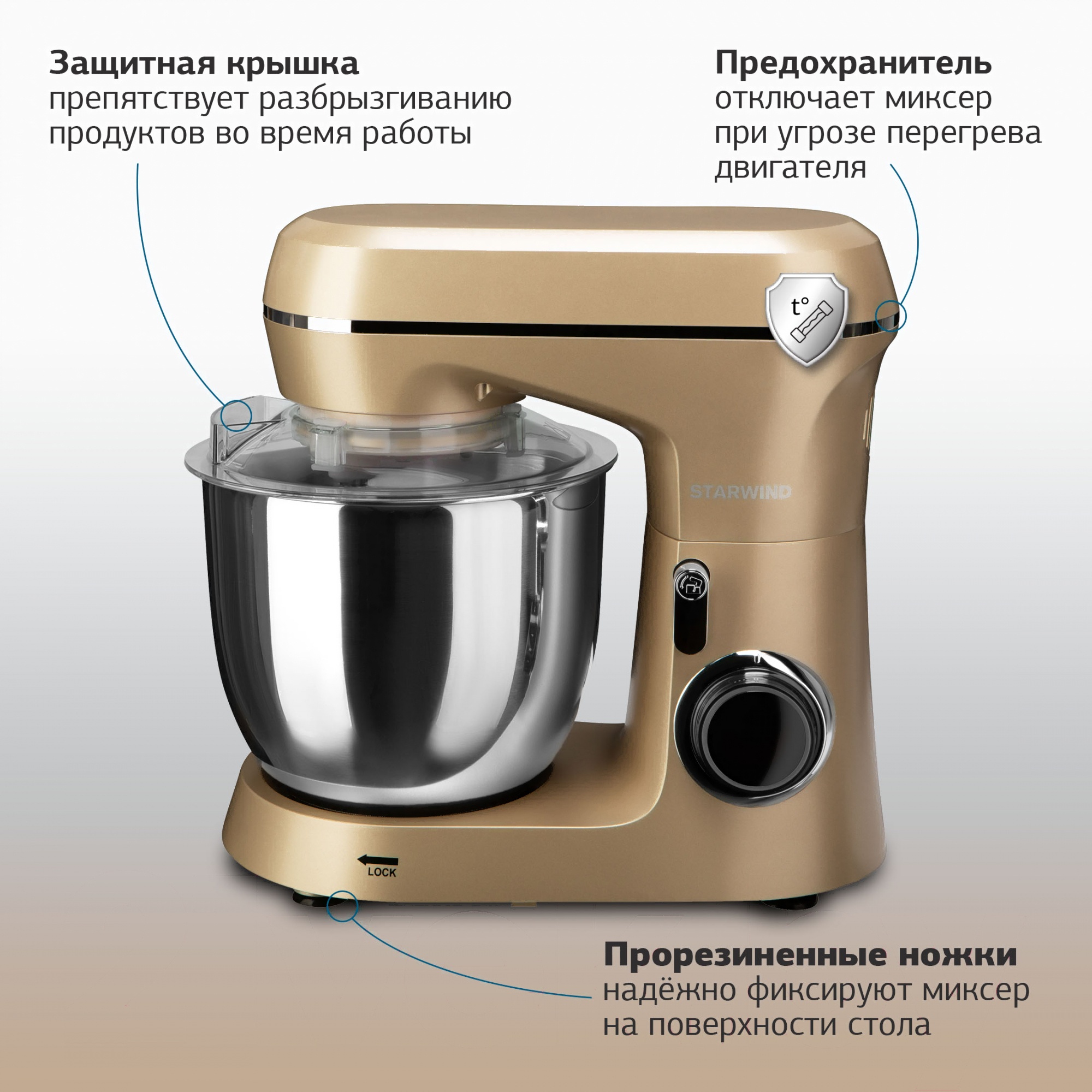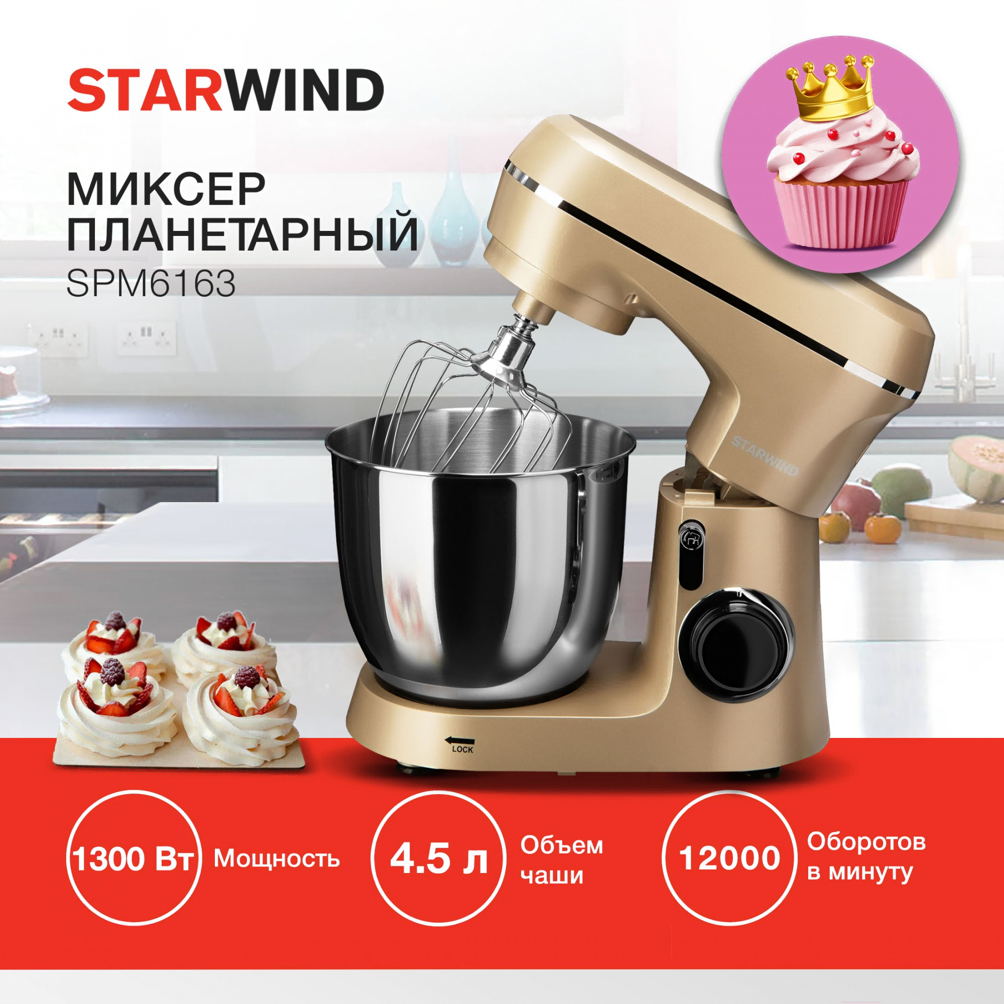 Отзывы о товаре Миксер планетарный Starwind SPM6163 1300Вт золотистый