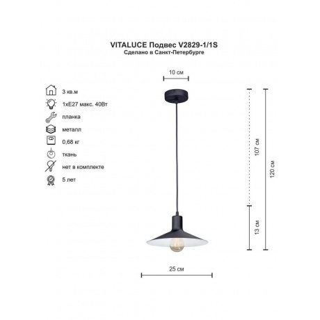 люстра подвесная vitaluce v2829-1/1s на одну лампу под цоколь e27 в стиле лофт будет прекрасным дополнением для интерьера, сочетая современный дизайн и функциональность, подходит для освещения жилых и коммерческих помещений