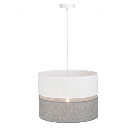 подвесной светильник vitaluce v2856-0/1s с одним источником света e27 мощностью до 40 вт, высота 128 см, ширина 40 см, тканевый серый абажур, белый каркас, подходит для гипсокартонных потолков, степень защиты ip20