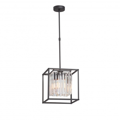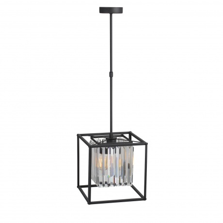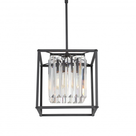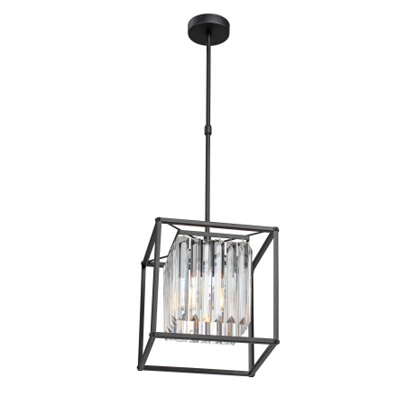 люстра vitaluce v5402-1/1pl на одну лампу под цоколь e27, в оригинальном и утончённом стиле лофт, с хрустальным плафоном и чёрным матовым каркасом, мощность 40 вт, подходит для низких и натяжных потолков, площадь освещения до 3 кв.м