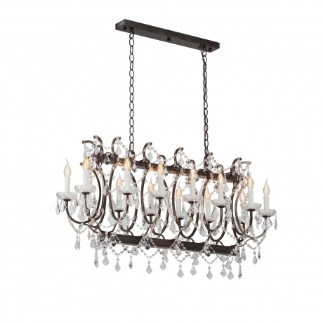 подвесная люстра vitaluce v5814-7/14, предназначенная для освещения площадей до 42 кв.м., оснащена 14 лампами с цоколем e14 и максимальной мощностью 40 вт каждая. общая мощность составляет 560 вт. длина люстры составляет 1170 мм.