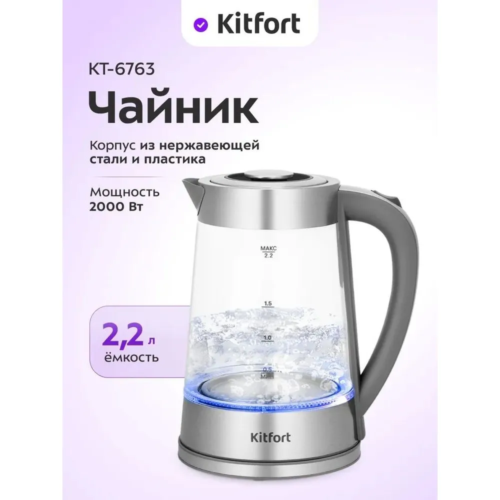 Чайник электрический Kitfort КТ-6763 - стоимость товара 2790 руб. Описание товара содержит: цены, фото и основные характеристики. Данный товар так же можно заказать по телефону 8(800)505-43-75 в Казани. В интернет-магазине КотоФото можно оформить заказ с доставкой, либо самостоятельно забрать товар в пункте самовывоза.