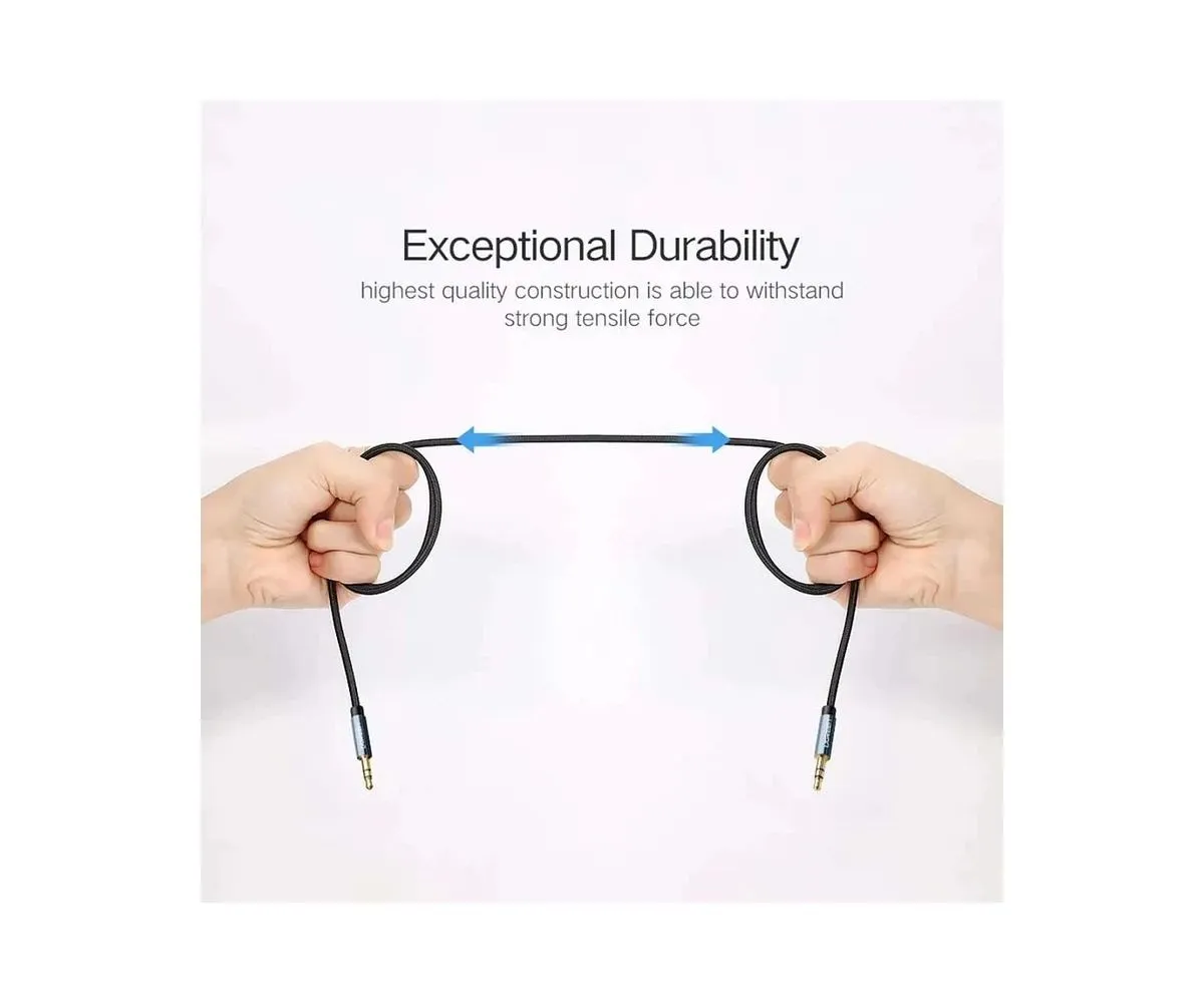 Кабель оснащен двумя коннекторами mini jack 3.5 мм и имеет достаточную длину, чтобы вы могли дотянуться до источника звука.