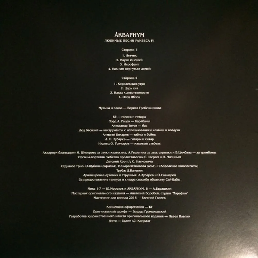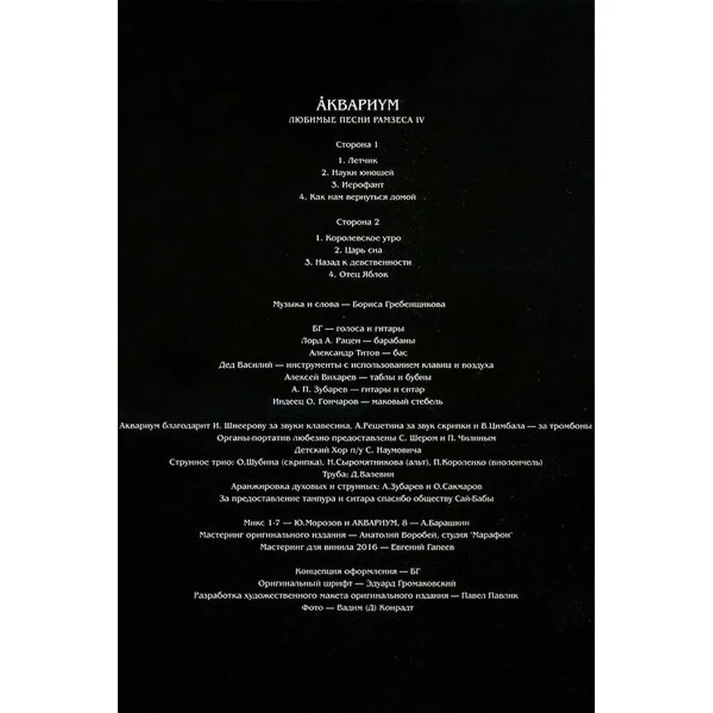 Описание товара Аквариум - Любимые Песни Рамзеса Iv (4640004135726) виниловая пластинка