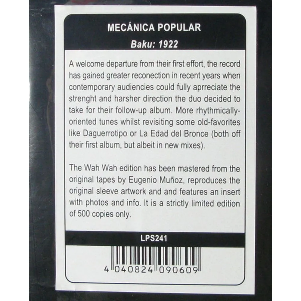 Mecanica Popular - Baku: 1922 (4040824090609) виниловая пластинка - характеристики, описание товара, фото и цены представлены на карточке товара. Этот товар вы можете купить по цене 4244 руб., позвонив по телефону 8(800)505-43-75 в Казани, или оформив покупку через корзину.