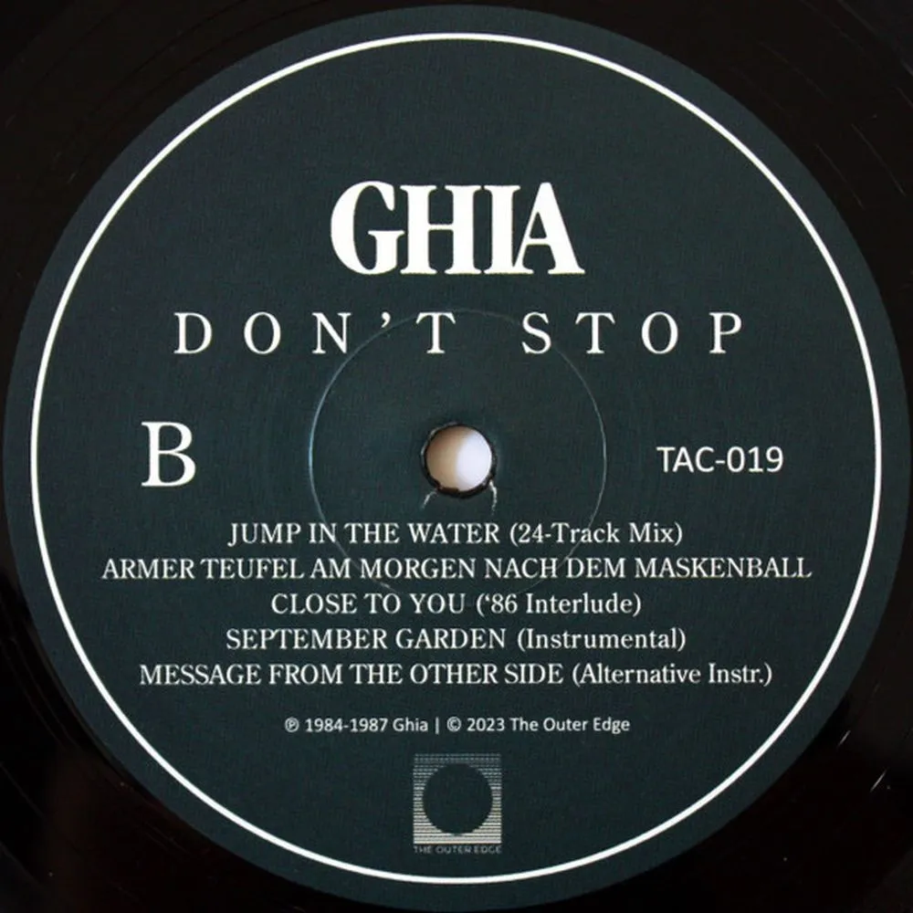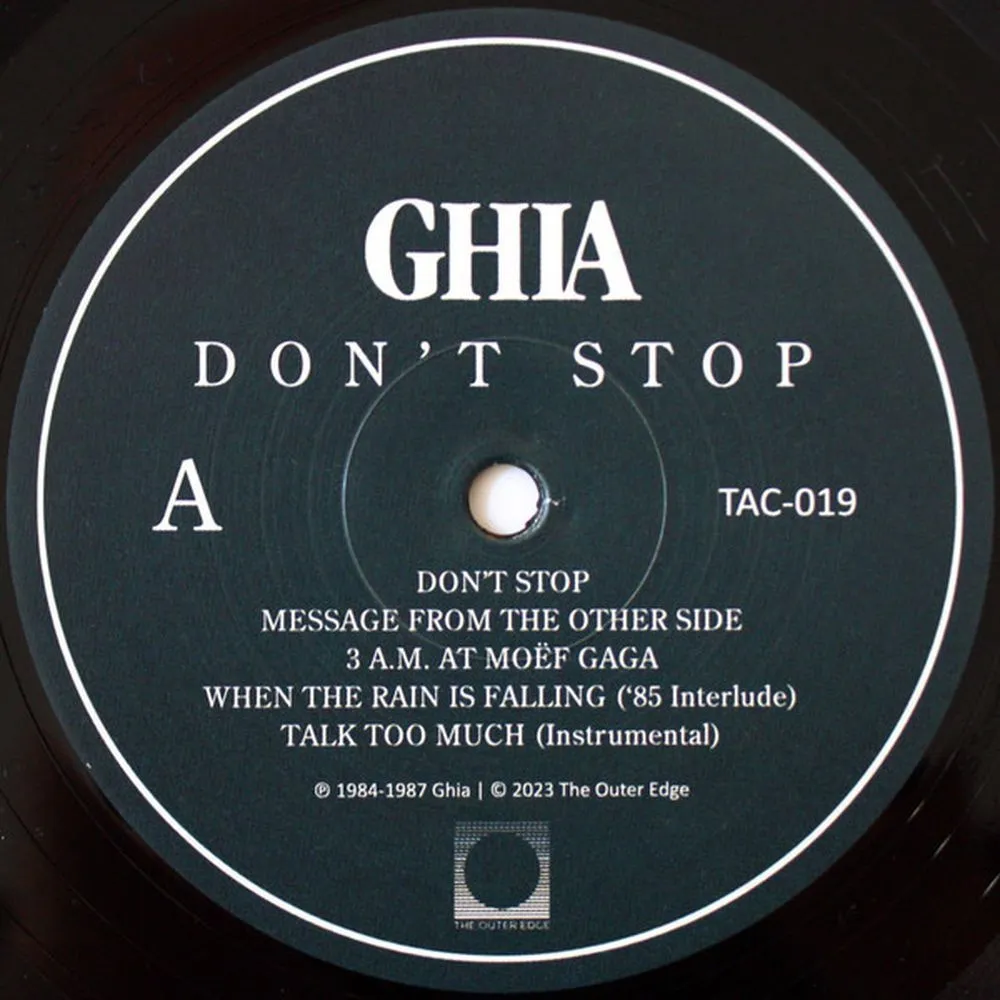 «Don't Stop» — третий альбом Ghia, выпущенный ретроспективно. Как следует из подзаголовка «Ранние работы и артефакты 1984–1987», он включает в себя некоторые из их самых ранних композиций, а также треки, записанные в тот же период, что и альбом «Cura?ao Blue». Альбом представляет собой сплав различных музыкальных стилей. Слушатели будут в восторге от целого ряда жанров, включая электронику, фанк, соул, джаз-фанк, синт-поп и даже рэп/хип-хоп, все это сплетено воедино в цельное произведение, которое остается преимущественно инструментальным. В целом, «Don't Stop» представляет собой самый фанковый и экспериментальный релиз Ghia на сегодняшний день. Примечательно, что на альбоме представлена ??рэп-версия скандального немецкого стихотворения Германа Гессе «Armer Teufel am Morgen nach dem Maskenball» («Бедный дьявол утром после костюмированного бала») 1926 года, сопровождаемая ритмом драм-машины и фанковой гитарой. В этом стихотворении описывается человек, который накануне вечером слишком много выпил, рассказывающий свою историю и описывающий похмелье. Заглавный трек «Don't Stop» и захватывающая минималистичная электро-фанковая композиция «3 AM at Mo?f Gaga» обе напоминают о олдскульной электронике. Последняя отсылает к испанской дискотеке Mo?f Gaga, расположенной на Балеарском побережье, которую динамичный дуэт Лутца Боберга и Франка Симона часто посещал во время своих отпусков в 1980-х годах. Хотя точная музыка, игравшая в «3 AM», неизвестна, прослушивание трека Гии, несомненно, передаст атмосферу этого места.