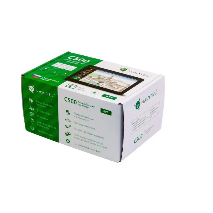 Надежный навигатор с сенсорным 5-дюймовым экраном и предустановленной картой России. Устройство комплектуется удобным креплением на лобовое стекло и автомобильным зарядным устройством. Навигатор быстро устанавливает связь со спутниками GPS и стабильно поддерживает ее во время поездки. Для работы устройства не требуется соединения с Интернетом, что помогает существенно сэкономить расходы на мобильный трафик. Автонавигатор NAVITEL C500 работает на базе стабильной операционной системы Windows CE. На устройстве предустановленна программа Навител Навигатор, которая быстро осуществляет поиск нужного объекта в базе адресов. Пользователям доступны и другие виды поиска: по координатам, ближайшим и «любимым» местам, непосредственно на карте. В большинстве случаев, на построение маршрута уходят доли секунды. Навител Навигатор предлагает пользователю три альтернативных маршрута для выбора оптимального пути. На навигаторе NAVITEL С500 установлена подробная карта России. Карта содержит актуальную информацию о дорожной сети и инфраструктуре населенных пунктов. По мере движения водитель получает голосовые и визуальные подсказки о скоростном режиме, опасных участках, предстоящих маневрах и необходимости перестроиться в другую полосу. В навигатор интегрирована база Полезных объектов инфраструктуры – заправок, гостиниц, банкоматов, культурных и административных объектов.