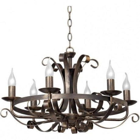 Люстра в стиле ковка. Подходит для жилых и общественных помещений. Рекомендуемая площадь освещения - 18 кв.м. Общая мощность -360 Вт.